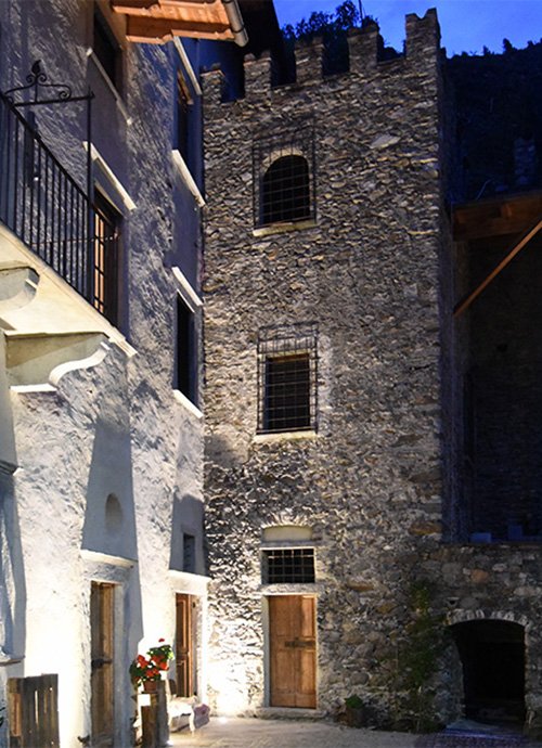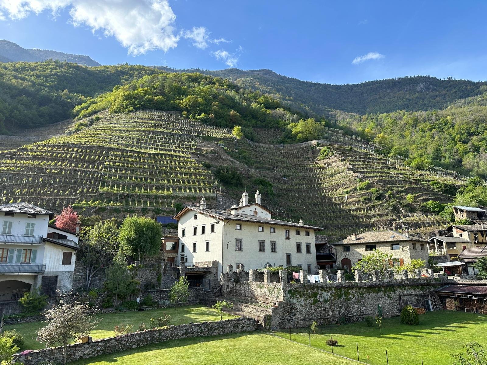 Nella storica contrada Novaglioli, un luogo fatto di piccole abitazioni contadine, stalle e antiche cantine costruite nei secoli dai popolani del borgo, sorge un edificio nobiliare risalente al 1500, oggi parte della nostra proprietà. Questa dimora, conosciuta come palazzetto Lambertenghi, appartenne originariamente ai nobili Lambertenghi–Lavizzari e, nel Seicento, durante il dominio dei Grigioni, passò alla famiglia svizzera Jecklin di Coira. Proprio in quell’epoca sul versante retico della valle si sviluppò una viticoltura florida, capace di produrre vini destinati al mercato svizzero. A quel periodo prospero seguirono anni più difficili, segnati da ristrettezze economiche che portarono incuria e degrado, sia nel fabbricato sia nei vigneti circostanti. Questa situazione è proseguita fino al 2016, quando abbiamo avviato un importante progetto di recupero che ha restituito vita alla storica torre, alle cantine e agli ambienti originali del palazzo. Le cantine, con le loro spesse mura in pietra e le volte a botte, rappresentano oggi uno degli elementi più preziosi dell’edificio, custodi silenziose della storia e delle tradizioni della contrada.